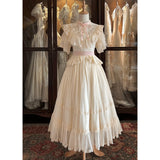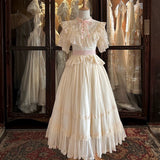 優雅な立ち振る舞いで魅せる公爵令嬢みたいに演出してくれるワンピース。胸元や袖、スカート部分に施された繊細なレースやフリルが、エレガントで上品な印象を与えてくれる。高い襟元とフロントのリボンがクラシックな雰囲気を強調し、ヴィクトリア時代の要素を取り入れています。