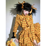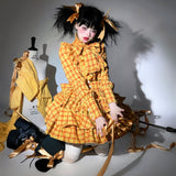 独創性が奏でる圧倒的な存在感。ドールみたいに演出してくれるチェック柄のリボンブラウスとストラップスカート。ブラウスは胸元にフリルが装飾されており、ストラップスカートはフリルで段を重ねたティアードとなっています。立体的なディテールが印象的。