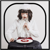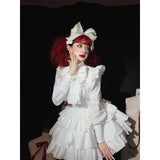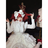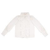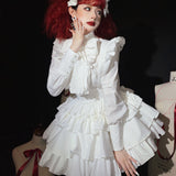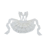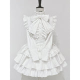 独創性が奏でる圧倒的な存在感。ドールみたいに演出してくれるリボンブラウスとストラップスカート。ブラウスは胸元にフリルが装飾されており、ストラップスカートはフリルで段を重ねたティアードとなっています。立体的なディテールが印象的。
