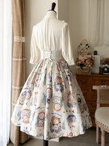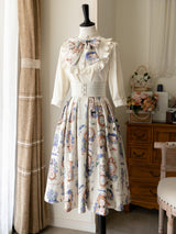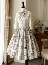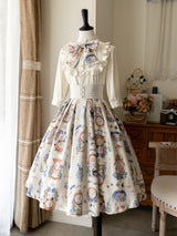 西洋時計と花束のコルセットスカートとハイネックリボンブラウス(ベージュ)