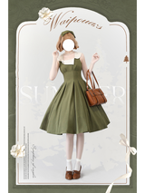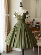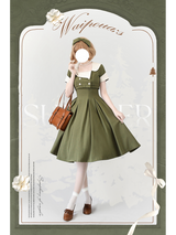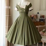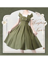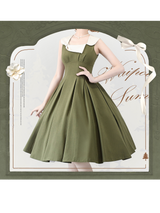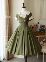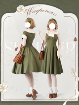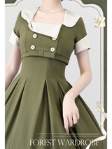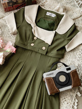 巴里のお嬢様のクラシカルワンピースとショートジャケット(モスグリーン)