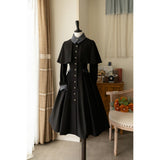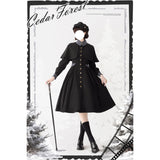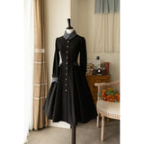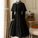 映画女優のクラシカルコートワンピースとショートケープ(ブラック)