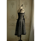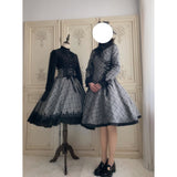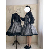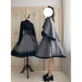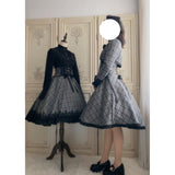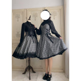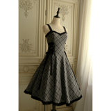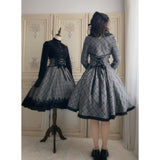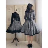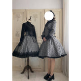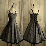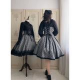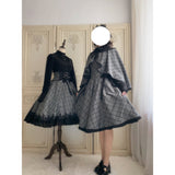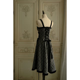 余白の美学を纏った洗練のお嬢様に。クラシカルな雰囲気を醸し出してくれるジャンパースカート。グレーを基調としたチェック柄で、落ち着いた印象ながらも洗練されたデザイン。バックとサイドにレースアップが装飾されています。黒地のトリミングとリボンが全体のデザインを引き締め、シックで上品な雰囲気を演出してくれる。