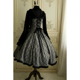薄墨の格子柄の編み上げジャンパースカート[2025年7月下旬-8月中旬発送予定]