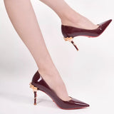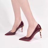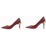 Rose Flower Pointed High Heeled Pumps - Wine Red[2026年4月上旬-4月下旬発送予定]