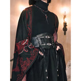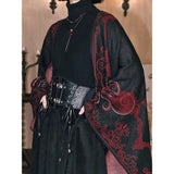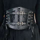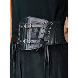 艶を抑えた黒のレザーとメッシュを重ね、中央には黒薔薇を思わせるレースが静かに浮かび上がるコルセット。構築的でいてどこか退廃的な気配を纏っています。左右に配された編み上げと二本のバックルが身体を引き締めながらも装飾としての緊張感を生み出しています。