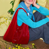 ふらりと、お出かけしたくなる。折り紙のような折りたたみ構造から生まれたユニークなシルエットのバッグ。お気に入りのアイテムを詰めて、ピクニックに出掛けてみるもの良い。さあ、今日はちょっと遠くの公園まで行ってみようかしら。