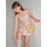 ワンタンのような、くしゅっと感と愛らしさを表現したシルエットのバッグ。「ひとくちでぱくっ」って食べたいのは、ワンタンじゃなくて、ドタバタな日常。小さく見えて、ちゃんと入る、手のひらサイズの安心感。バタバタな朝も、このバッグと一緒なら、少しだけ心に余裕が持てそう。