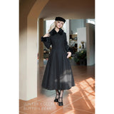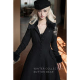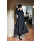 凛とした冷気の中にも温もりを感じさせる、孤高の美しさを纏うクラシックコート。静謐な冬の光をまとったようなクラシカルエレガンスの象徴。ブラックのウール地が洗練された気品を放ち、漆黒のファーカラーが冬の詩情を添えます。立体的なシルエットはウエストを美しく引き立て、裾にかけて優雅に広がるラインがまるで映画のワンシーンのよう。