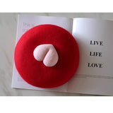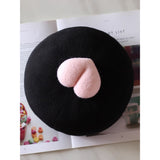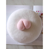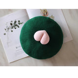 ユーモアとアートが溶け合った遊び心。桃のような、動物の尻尾のような、ふっくらとした立体モチーフがちょこんと鎮座したベレー帽。ちょっと風変わりで、愛らしさを忘れないキュートさに、思わず笑みを誘います。