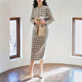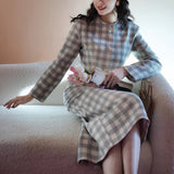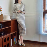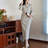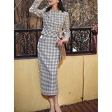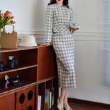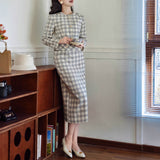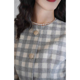 一冊の古いファッションブックのページから、そっと抜け出してきたかのようなジャケットとストレートスカート。ジャケットは、気づかれないほど静かにウエストラインを絞り、スカートは裾にかけてわずかに締まるヒップラインを包み込むストレートシルエット。生地にはウール混のツイードを使用しており、色味は、柔らかさを湛えた上質なライトグレー。控えめでありながら奥行きがあり、見れば見るほど味わいが深まる色合い。しっかりと暖かさを備えながらも、決して重くならず、凛としたエレガンスを保つ一着。