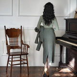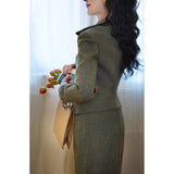 青白橡の貴婦人のクラシックジャケットとストレートスカート