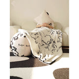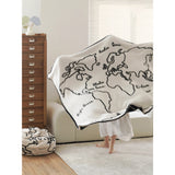 世界地図を描いた旅心をくすぐるブランケット。柔らかな質感の上に、手書き風のラインで大陸や海の名が浮かび上がり、まるで地球儀を包み込むような温もりを感じさせます。シンプルなモノトーンの配色がインテリアにも馴染み、日常の中に「世界を感じる静かな冒険」を与えてくれる。旅の夢と安らぎを同時に運ぶ、モダンで詩的なアイテム。