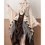 ヴィクトリア時代の貴族令嬢を想起させるブラウス。繊細なレースとフリルをたっぷり使ったエレガントなアイテム。襟元には存在感のあるジャボがついており、広がった袖口には美しいレースが装飾されています。上品な装飾と美しいディテールに目を奪われる。