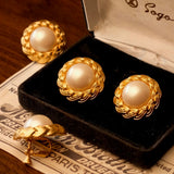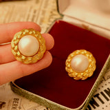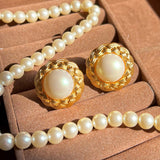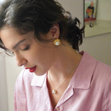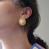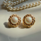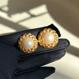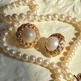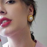 存在感のある大きな真珠を金色のケーブル編みで包み込んだ耳飾り。闇の中で光り輝くアイテムは華麗で神秘的。孤高の麗しさを解き放っています。美しき煌めきで視線を奪って。華麗なる貴婦人に。