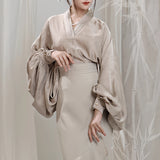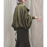 東洋的な優雅さと現代的な洗練を融合させたブラウス。ゆったりとしたシルエットに、流れるようなドレープが肩から袖にかけて美しく広がります。竹の文様が織り込まれた生地は、静謐な自然美と詩的な気品を感じさせ、見る角度によって陰影が変化します。静謐な空気を纏った、まるで東洋の絵巻から抜け出したようなアイテム。