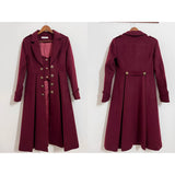 中世時代の公爵騎士みたいに演出してくれるクラシカルなウールコート。ダブルブレストの装飾的なボタンが縦に並び、ウエスト部分に切り替えとタックを入れることでシルエットに重厚感と気品を与えています。洗練された美学と駆け抜ける永遠。計算されたスタイルで更なる高みを目指して。