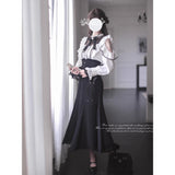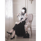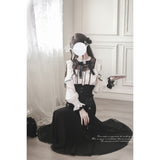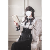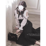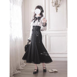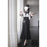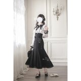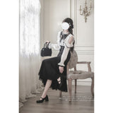 優雅さと可愛さを兼ね備えた令嬢のような、クラシカルな甘さを醸し出しているアイテム。フリルとレースを贅沢にあしらったトップスは、透け感のあるレースがエレガントな陰影を添え、肩を程よく見せるカッティングが華奢な印象を演出します。ロング丈のスカートは、流れるようなマーメイドシルエットに、しっかりとしたハードなコルセットを施したデザイン。裾部分にはレースが装飾されており、ロマンティックなムードを強調しています。
