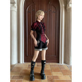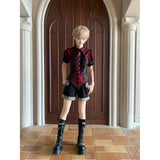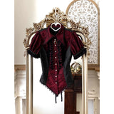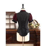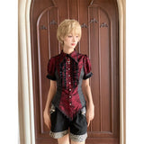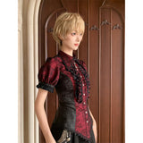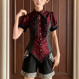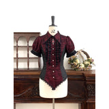 西洋貴族のジャガードブラウス | Short Sleeves - Dark Red[2026年6月上旬-6月下旬発送予定]