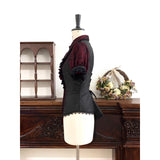 古城の舞踏会に現れる若き貴族、あるいはゴシック小説に登場する気高い令嬢を思わせるブラウス。胸元を縦に走るフリルが重なり、まるで中世の礼装のような厳かな気配を漂わせています。ウエストを美しく絞るコルセットライクな切り替えと背面のレースアップが、どこか退廃的でドラマティックなシルエットを形成しています。貴族の夜会、そして少し危うげなロマンを織り交ぜた世界観をイメージして制作された、気品と妖艶さが共存するデザイン。