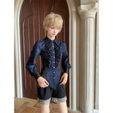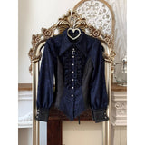 西洋貴族のジャガードブラウス | Long Sleeves - Dark Navy[2026年6月上旬-6月下旬発送予定]