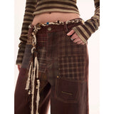 ヴィンテージ感漂うワイドシルエットのパッチワークパンツ。ブラウンをベースに、チェック柄を組み合わせたパッチワークデザインが特徴的。古着のような味わい深さを持ちながら、ラフでストリート感のあるスタイルを演出しています。ゆったりとしたワイドストレートのシルエット。裾までたっぷりと落ちるラインが存在感を放ちます。