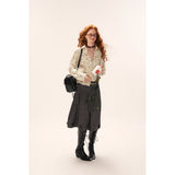 クラシカルなチェック柄にエッジの効いたディテールを融合させたスカート。アシンメトリーな切り替えラインと、裾に施された小さなリボンモチーフが、静かな個性を際立たせています。重厚感のある生地感がシルエットに立体感を生み、上品さとストリートムードを両立。知的でありながら反骨的なスタイルが完成する、モードなアイテム。