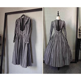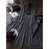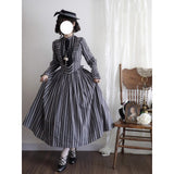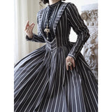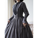西洋令嬢の縦縞クラシカルワンピース - Dark Gray[2025年12月上旬-12月下旬発送予定]