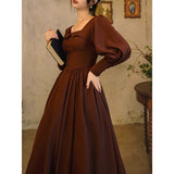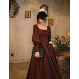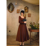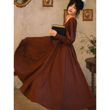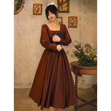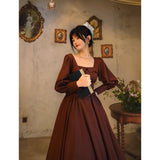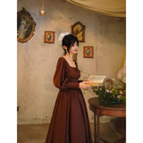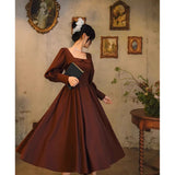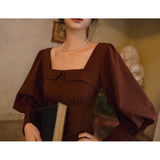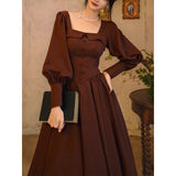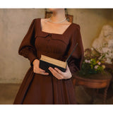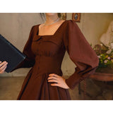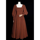 中世古城のお嬢様みたいに演出してくれるクラシカルなワンピース。ウエストを引き締めるコルセットテイストな切り替えが上品なシルエットを描き出しています。ふんわりとしたパフスリーブとくるみボタンがアンティーク調の趣を添え、奥ゆかしい華やかさを醸し出しています。知的で落ち着いた印象を与えつつ、クラシカルロマンを感じさせる装い。