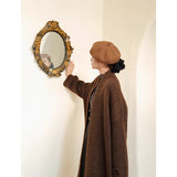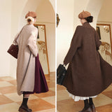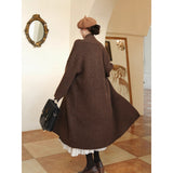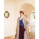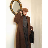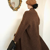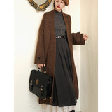 まるで秋の午後のぬくもりをそのまま纏ったようなロングニットコート。ゆったりとしたシルエットに、柔らかく厚みのある編地が空気を含み、包み込むような優しさを感じさせます。襟から裾へと自然に流れるラインが美しく、肩を落としたデザインがリラックス感を演出。袖口には大きめのボタンがあしらわれ、さりげないクラシカルなアクセントに。深みのあるブラウンや穏やかなベージュの色調が、知的で温かみのある印象を与えてくれる。