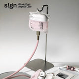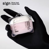 点滴バッグをモチーフにしたAirPodsケース。透明感のあるパックに淡いピンクの液体が入ったように見える仕上がりで、正面には「MEDICATION ADDED TO I.V. / MUSIC」と医療処方を思わせるプリントが施されています。50mlの目盛りや注入口のディテールも再現されており、まるで点滴のようなリアルな質感が特徴です。医療モチーフと音楽を掛け合わせ、「音楽を点滴のように日常に取り込む」というコンセプトを体現した、遊び心あふれるAirPodsケース。