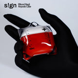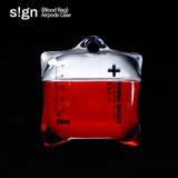 輸血用の血液パックをモチーフにしたAirPodsケース。赤い液体を満たしたように見える透明のパックに、「WHOLE BLOOD」「50ml」と医療処方を思わせるプリントが施されています。まるで本物の血液バッグのようなリアルさが特徴的。医療的なクールさと遊び心を掛け合わせた、インパクトのあるクリエイティブなAirPodsケース。