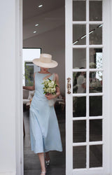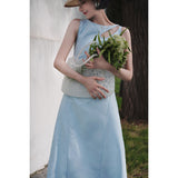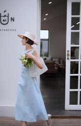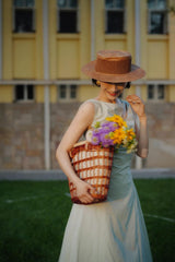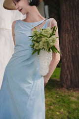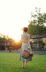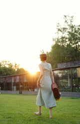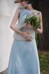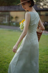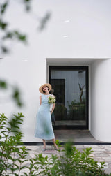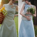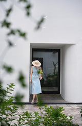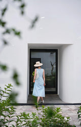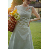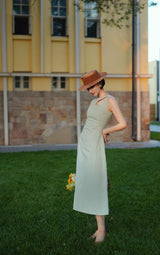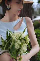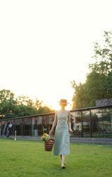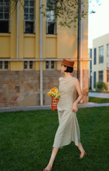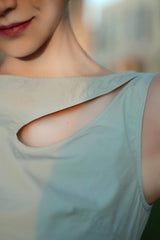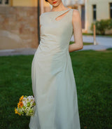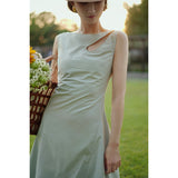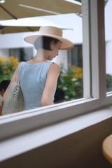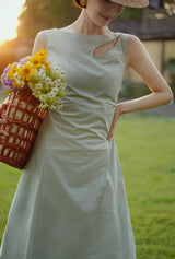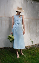 イタリア画家・モランディを彷彿とさせるモランディカラーのノースリーブワンピース。肩部分を大胆にカットアウトした独創的なデザイン。ウエスト位置が高く、綺麗なシルエットでお召しいただけます。洗練されたエレガンスを纏ったモダニストに。