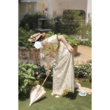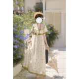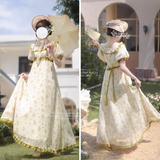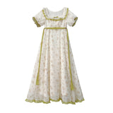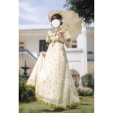 19世紀のヨーロッパの王妃みたいに演出してくれるロング丈の花柄ワンピース。高めのウエスト位置から流れるように広がるシルエットが特徴的で、優雅で上品な雰囲気を演出します。ふんだんに施されたフリルや繊細なレース装飾によって、華やかな仕上がりとなっています。時を超えたロマンティックな世界へ。