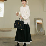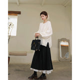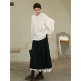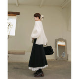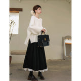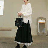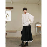 クラシカルで奥ゆかしい気品を纏うロング丈のプリーツスカート。しなやかな生地が美しく広がり、歩くたびに静かな揺らめきを生み出します。裾からのぞく白いレースのペチコートが、まるで花びらの縁取りのように柔らかなコントラストを添え、全体の装いにロマンティックな深みを与えています。クラシックとモダンが交差する優美なアイテム。