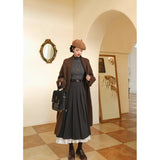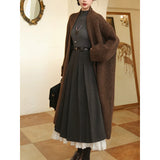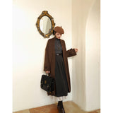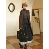 クラシカルで奥ゆかしい気品を纏うロング丈のプリーツスカート。しなやかな生地が美しく広がり、歩くたびに静かな揺らめきを生み出します。裾からのぞく白いレースのペチコートが、まるで花びらの縁取りのように柔らかなコントラストを添え、全体の装いにロマンティックな深みを与えています。クラシックとモダンが交差する優美なアイテム。