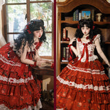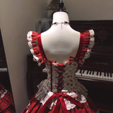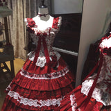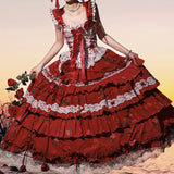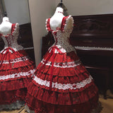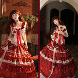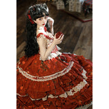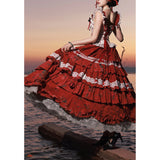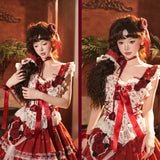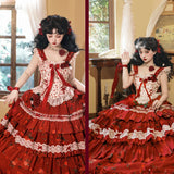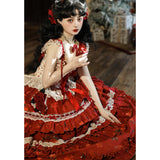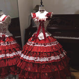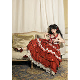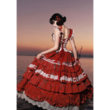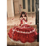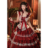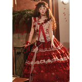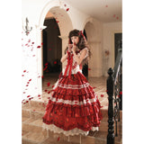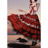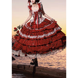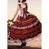 深紅の薔薇の編み上げビスチェとティアードスカート[2026年3月下旬-4月下旬発送予定]