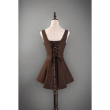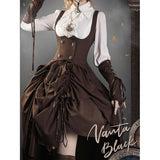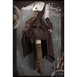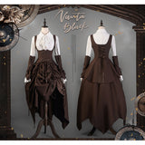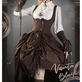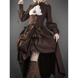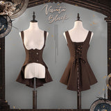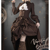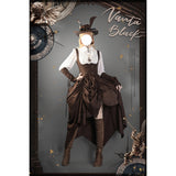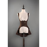 蒸気機関を動力源とした機械仕掛けのスチームパンクの世界に誘われたみたい。前後で丈感が異なるテールベスト。前面には装飾的なボタンが配置され、ウエスト部分がタイトにフィットする形状で、シルエットを美しく引き立てます。背面にはリボンで編み上げるデザインが施されています。ロマン溢れる世界の主人公になりきって。