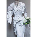 美しさと気品を兼ね備えた伯爵令嬢みたいに演出してくれるヴィクトリアンブラウス。背面の長いテールデザインが特徴的で、施されたフリルが優雅な印象を与えます。背面のレースアップがスタイルを引き締め、シルエットを美しく魅せる工夫がされています。ドラマチックな世界へ誘われてみて。