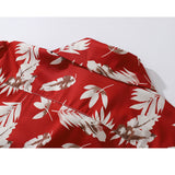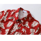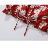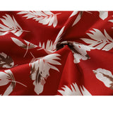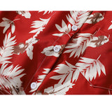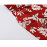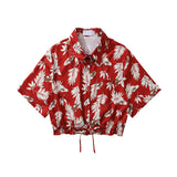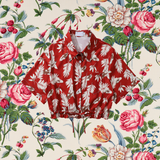 太陽が沈む前の、空いっぱいに広がる鮮やかな茜色。そよ風に乗って優雅に揺れるパームリーフを描いたショート丈のシャツ。びっしりと茂った葉を通して眺める美しい夕焼け。デニムなどカジュアルなボトムスと合わせてみて。