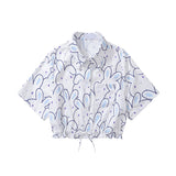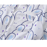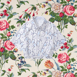 ひょっこりと顔を出したうさぎさんを描いたショート丈のシャツ。つぶらな瞳と長いお耳が可愛らしい。想像力を刺激する、不思議の国の案内人。デニムなどカジュアルなボトムスと合わせてみて。