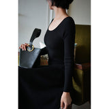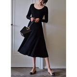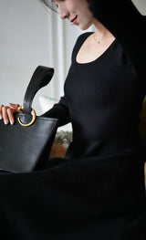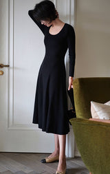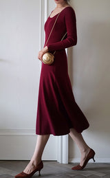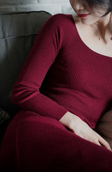しなやかな女性らしいフォルムを可憐に彩ってくれるニットワンピース。細身のスタイルでフェミニンな雰囲気を醸し出してくれます。程よい丈感ですっきり見せながら上品さも演出してくれる一枚。