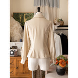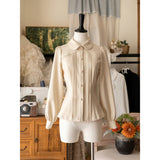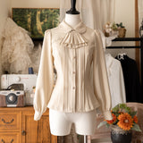 エレガントな英国のお嬢様みたいに演出してくれるブラウス。17世紀に流行したクラバットが装飾されており、胸元にはプリーツ、襟の縁にはレース刺繍が装飾されています。時代を超えて輝く永遠のスタイル。 洗練された気品を纏ったお嬢様に。