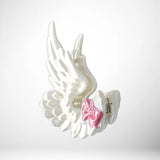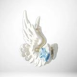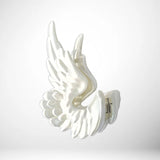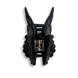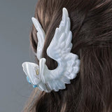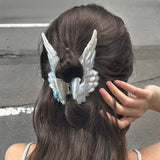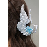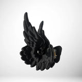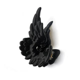 天使の羽を思わせる、立体フォルムのヘアクリップ。羽の一枚一枚が重なり合うように造形されています。軽やかで幻想的、まるで背中からそっと舞い降りた羽をそのまま髪に留めたような印象のデザイン。