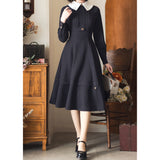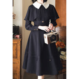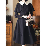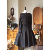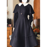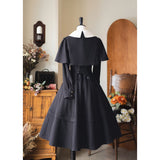 1950年代の銀幕女優のファッションは半世紀以上経った今でも色褪せない憧れの的。品格を際立たせてくれるエレガントでクラシカルなケープワンピース。ケープは取り外しが可能となっており、バックには編み上げが装飾されています。大きな白い襟がレトロな印象を与え、ウエストラインを強調しながら、スカート部分はフレアに広がり、美しいシルエットを引き立てます。華やかな女性らしさを強調したニュールック。