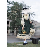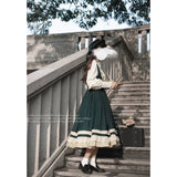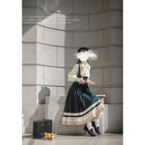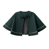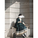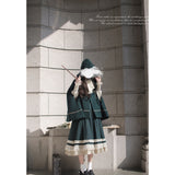 魔法学校のお嬢様みたいに演出してくれるジャンパースカートとマントとケープとブラウス。ジャンパースカートは、裾部分に繊細なレースとプリーツの装飾が施されており、ウエスト位置が高いのが特徴的。ラインが入ったクラシカルなデザインのマントやケープを羽織ると、優雅なシルエットを演出してくれる。物語の世界に誘われてみて。