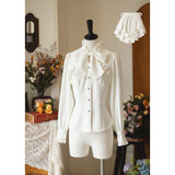 エレガントな英国のお嬢様みたいに演出してくれるクラバットブラウス。立ち襟がクラシックで洗練された雰囲気を演出しており、施されたフリルが華やかで上品な印象を与えます。ウエストラインがやや絞られており、美しいシルエットを強調しています。時代を超えて輝く永遠のスタイル。洗練された気品を纏ったお嬢様に。