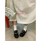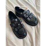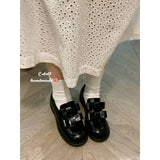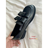 ガーリーでクラシカルな雰囲気を持つダブルリボンローファー。光沢感のあるブラックレザーに、大きめのリボンが2つ並んだデザインが特徴的。丸みのあるトゥとやや厚みのあるソールが、レトロなムードを引き立てつつ、上品ながらも可愛らしい印象を演出しています。