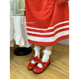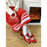 Vivid Red Ribbon Mary Jane Pumps