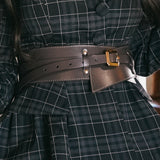 コルセットを装飾しているようなワイドなベルト。幅の広いベルトと、細いベルトを組み合わせたデザインとなっており、細いベルトだけをお使いいただくこともできます。合わせ方次第で特別感のある装いに演出してくれる。